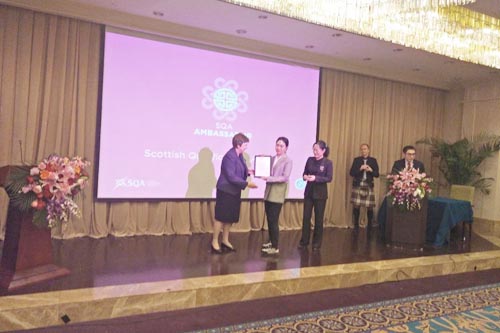 自教育*留学服务中心引进SQA-HND项目以来,每年都有大批优秀的中国学子远赴英国完成学业,这些优秀的学生在自己的专业领域取得了骄人的成绩。英国苏格兰学历管理委员会(SQA)设立了理想大使这一奖项,以表彰中国HND优秀学生的努力和付出。获奖同学均学习成绩优异,校园活动丰富,勇于挑战和自我实现。我校2015级商务管理专业黄愿雅同学荣获SQA-HND2018-理想大使"荣誉称号。