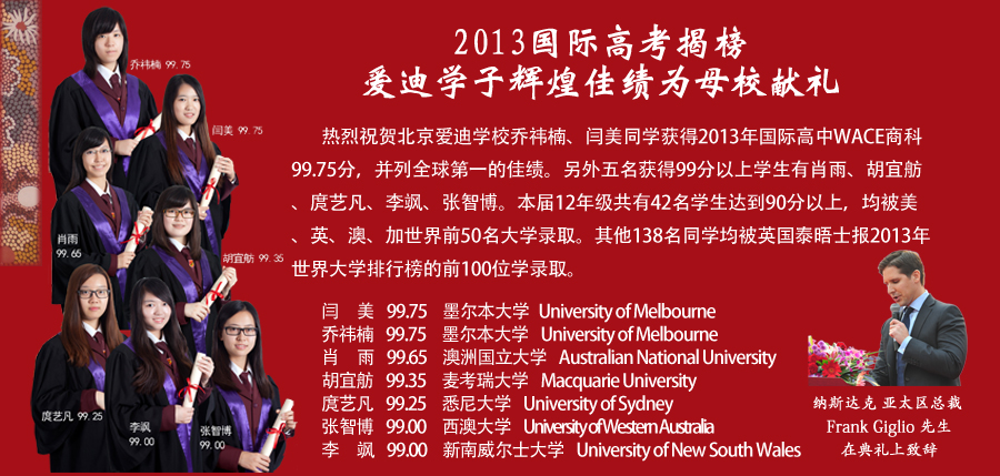2013国际高考揭榜 爱迪学子辉煌佳绩为母校献礼