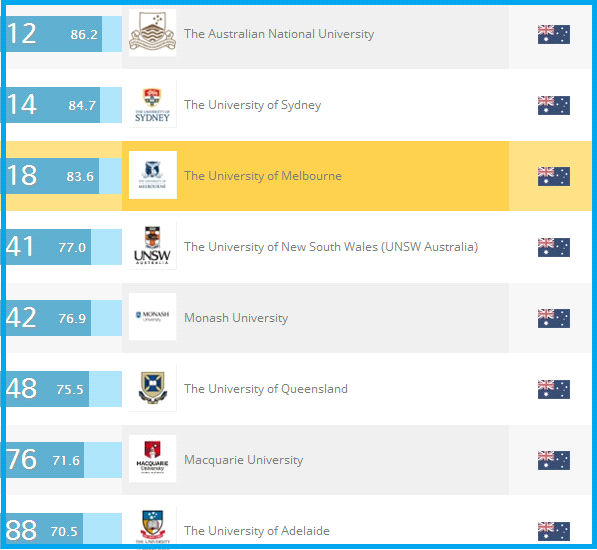 这个领域比较泛,从广泛的人文艺术学位,到表演、视觉艺术和通讯等具体的领域,例如记者,媒体和电影专业。这个领域往往会有很多研究生,尤其是人文学和社会学科。在创造性和表演方面,澳洲也有很多有声望的大学和学院,留学党可以继续深造。在世界排名方面,澳洲大学在人文艺术方面的表现也是比较抢眼,在*新的QS领域排名中,人文艺术方向,一共有7所澳洲大学进入Top 100。其中*好的是澳国立,世界排名12位!