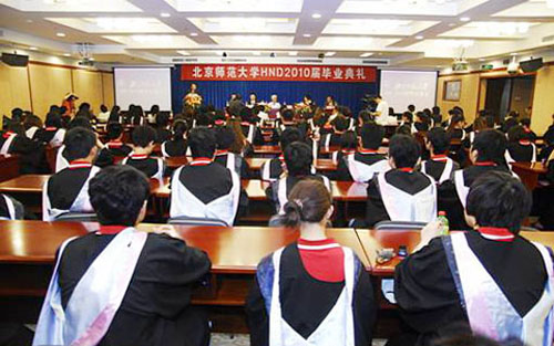 金声木铎,璀璨流年,告别青春,告别师大,三年时光匆匆而过,此去须怀报国志,不忘春风化雨情。北京师范大学英国高等教育文凭(HND)项目*一届毕业生将在这盛夏六月告别亲爱的母校,踏上他们海外留学的新征程。6月10日上午,北京师范大学 HND 2010届毕业典礼在北京师范大学京师大厦三层第六会议室隆重举行。