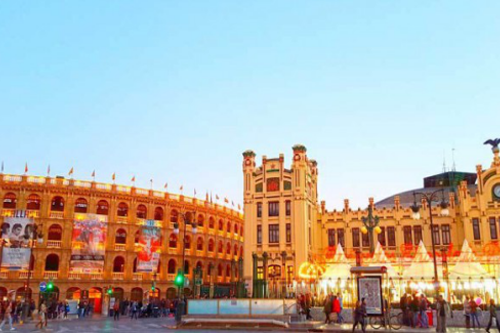 坐落在市中心Xátiva街上的斗牛场与火车北站紧紧相邻,都是有年代的建筑了。斗牛场建于1850-1860年之间,除了在斗牛季承办斗牛比赛以外,也经常有一些大型的活动在此举办。旁边的火车北站是一座外观对称的建筑,今年也是建成100周年纪念,而若乘客在火车北站下车,便可以感受到与其他火车站截然不同的古色古香的味道,内部墙面由漂亮的彩色瓷砖贴成,瓷砖上马赛克有不同语言拼的旅途愉快的字样,祝福离开这里的旅客一路顺风。