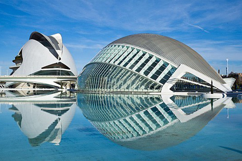 由瓦伦西亚本土建筑师设计Santiago Calatrava设计的建筑群经常被人戏称为外星建筑,是西班牙未来主义建筑风格的典范。科学艺术城主要组成部分有:半球形寓意知识之眼的IMAX影院(Hemisféric)、鱼骨状的菲利佩王子科学博物馆(El Museo de las Ciencias Príncipe Felipe)、索菲亚皇后剧院(Palau de las Artes Reina Sofia)、拥有超过四万海洋生物的欧洲*大的海洋馆(Oceanográfico)和金色堤坝大桥(Puente l'Assut d'Or)。游客可以入内参观游览,或者仅是在外部瞻仰这一美妙绝伦的建筑群,清澈的池水和无暇的蓝天形成完美呼应,令人震撼。此外,瓦伦西亚网球公开赛的场馆也在这里。