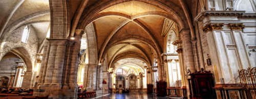坐落于老城区的瓦伦西亚主教堂糅合了罗马式、哥特式、文艺复兴、巴洛克和新古典主义的建筑风格,始建于13世纪。后来在摩尔人统治时期被改建成清真寺,直至1238年才又恢复成罗马天主教教堂。也是因为这段历史,西班牙会出现很多融合了清真寺和天主教建筑特色的教堂,不懂历史的人突然看到两个风格于一体的教堂,是不是会一脸蒙圈呢?现在瓦伦西亚主教堂已经称为瓦伦西亚市区的地标性历史建筑。而铁门(Baroque Puerta de Hierros)边的塔楼建于13-14世纪,高度为50.85米。登上塔楼顶则可以俯瞰整个瓦伦西亚老城区。传说中的圣杯就安放在这里。