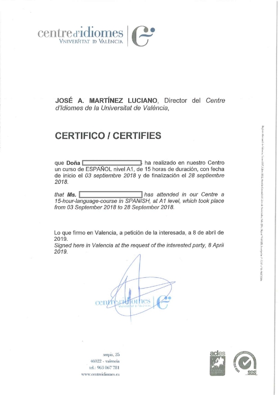 学校位置:瓦伦西亚,语言:西班语,瓦伦西亚语