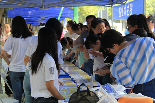 开放日活动中,学校校史馆、图书馆、体育馆均向考生及家长开放。优美的校园环境,有序的活动安排,尽显北外之美,留学项目学生也可和统招生一起享受这些校园资源。招生办在文化广场贴心安排的饮水机为酷热中的家长带来一丝清凉。通过阅读招生办精心制作的分省宣传彩页,聆听专家、学者的耐心细致的解答,考生及家长们感受到北外人对兼容并蓄 博学笃行的践行,感受到北外师生的诚意,坚定了报考的决心。
