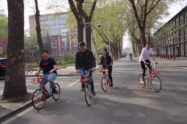 酒足饭饱后 丝毫看不出来长途飞行疲惫的兰开夏小哥跟小姐姐们打起了摩拜单车的主意,驰骋在校园的道路上,在这一刻他们享受着骑行带给他们的乐趣。