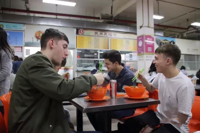 在中方老师和同学的带领下兰开夏大学师生顺利入住酒店后,外方和中方的肚子纷纷唱起了空城计。 中外师生来到接地气的学生食堂共同品尝从未接触过的早餐种类和挑战筷子,看他们屡战屡败,屡败屡战的模样真让人忍俊不禁。