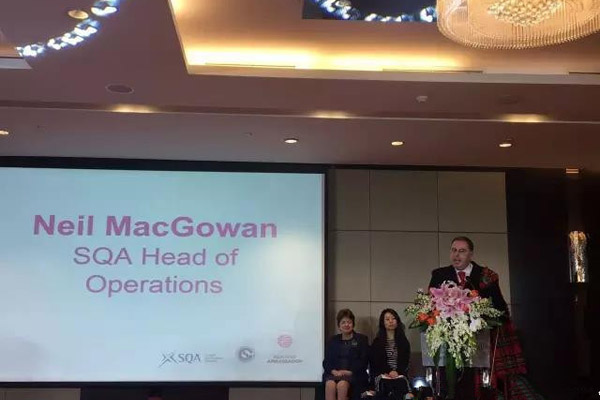 SQA-HND国际部主任Alistair Shaw 先生、运营总监Neil MacGowan 先生以及教育*留学服务中心国际合作处副处长秦岚女士对荣获"理想大使"的同学们进行表彰,并分别发表赠言与寄