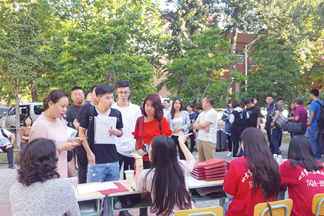 尽管冗长的队伍在无限延伸,在老师和学生会干部们的引导下,家长和学生们依然耐心等候,秩序井然。缴学费,住宿费,办理电话卡,安置行李,拍摄证件照片…….虽然很多学生都是舟车劳顿从全国各地汇聚北京,但新生们脸上并无疲倦之色,更多的是洋溢着对大学新生活的向往与憧憬。