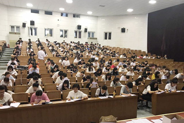 经过一晚的修整与安顿,9月7日上午9时2017级新生于竞先厅内进行入学分班考试。略带紧张的监考氛围里挥动笔尖的沙沙声不绝于耳,让我们一起期待于9月8日开学典礼上公布的分班结果吧。