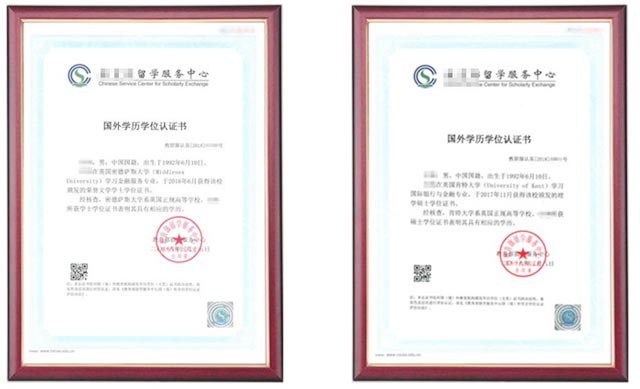 学士学位(本科学历)认证书/硕士学位(硕士研究生学历)认证书