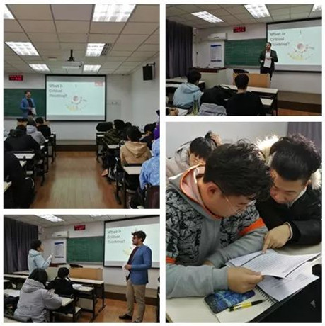 今天我们迎来了西英格兰大学的老师为我们带来的一节纯英体验课。课程内容是关于批判性思维(critical thinking),旨在鼓励学生在以后的生活中不要轻易就被眼前看到的东西所迷惑,要用辩证的眼光考虑更多的细节并且结合自己的所需来做*后的决定。