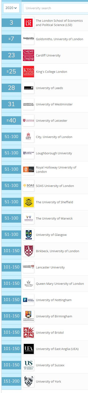 【传媒专业细分领域】世界排名前200的英国大学