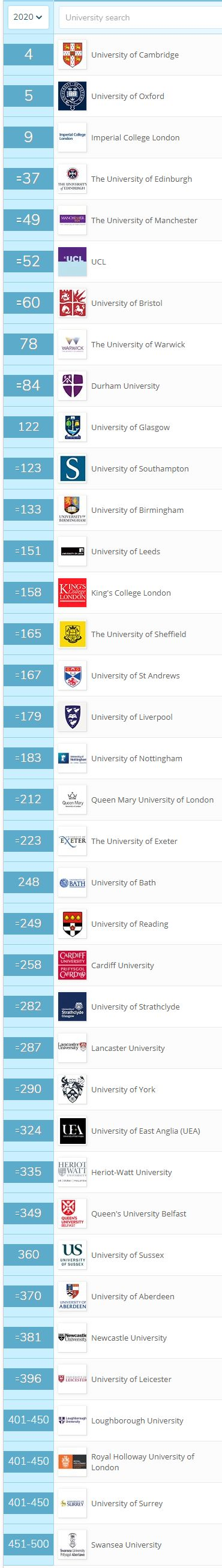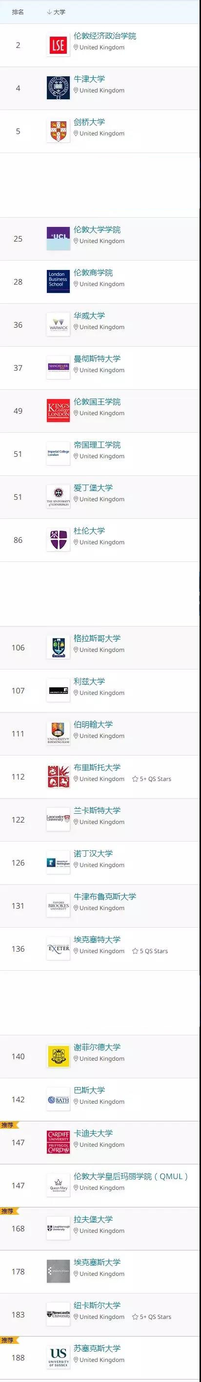 重点来看英国大学的表现。