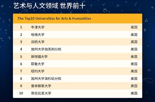 五大教学领域的世界前十名