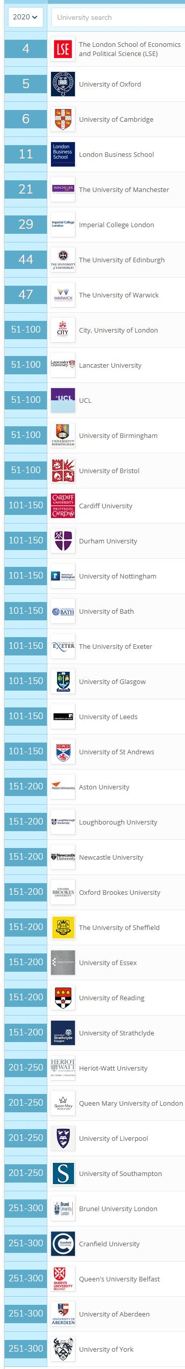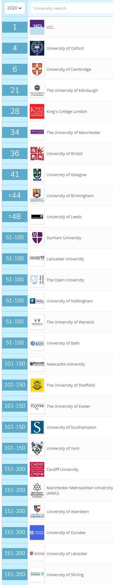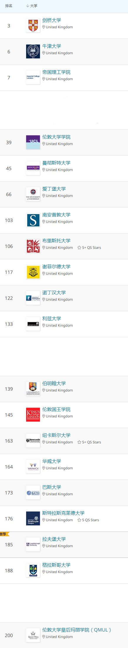 【教育专业细分领域】世界排名前200的英国大学
