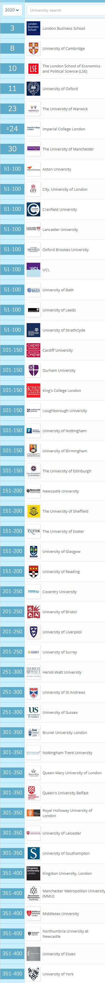 【商业管理细分学科】世界排名前400的英国大学