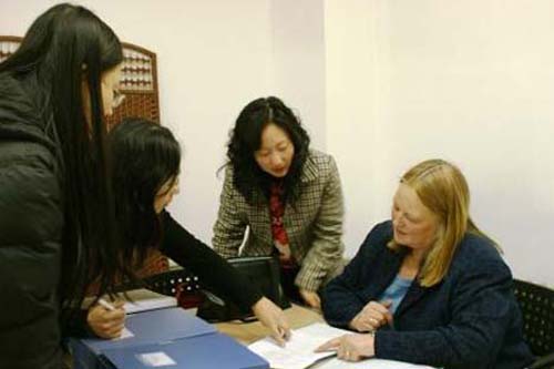 随后,Barbara Irvine女士马上开始了紧张的工作,对我中心的教学管理制度、教师手册、学生手册、内审制度等等进行了严格认真的审核,同时与我中心工作人员就学生的专业构成和学习生活情况展开了广泛交流。