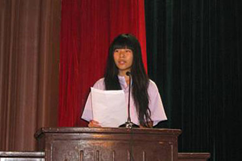 10级的学生代表高塬俨然一个成熟师姐的模样,因为她以流利的英语给师弟师妹们作出了表率。“Learning your English well”,学好英语,这是现阶段*重要的学习任务。她希望师弟师妹们都能用正确的适合自己的方法去学习英语,这样才会事半功倍。努力去做,如果你尽了自 己*大的努力,那么你就无需担心,因为英语学习就是一个付出汗水的学习过程。进入大学,人生的世界变得崭新而开阔,大家也将面临更多的考验,做好准备,勇 敢地迎接挑战,向着梦想的终点出发!