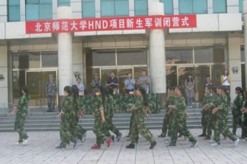 9月21日下午1点,北京师范大学HND项目2013级新生军训闭营仪式暨成果汇报演出在部队训练操场上隆重举行。出席此次大会的有北京师范大学继续教育与教师培训学院副院长曾文艺、北师大HND项目中心主任卓举纲、学管部主任李伟群、部队领导、2013级各班班主任以及全体军训教官和2013级全体同学。