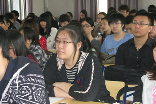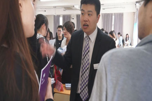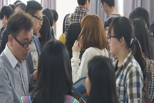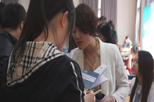 讲座之后是外方院校展会和答疑的时间,此次受邀来到现场的外方院校有约克圣约翰大学、赫尔大学、德蒙福特大学、朴茨茅斯大学等,同学们可以根据自己的需要向院校负责人当面咨询。11级毕业班的同学们大多申请到了学校,他们更多是咨询留学手续具体流程以及英国学校的详细情况。外国院校的老师们耐心的为同学们解答疑惑,提供建议。