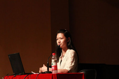 之后,北师大HND在校生代表2012级商管专业郑可欣同学为大家讲述了她在HND学习的经历。郑可欣同学首先用中英双语进行了简单的自我介绍,她标准的 发音和流利的语言表达能力让在座的学生和家长看到了HND的魅力。之后,郑可欣同学为大家展示了HND几个专业的课表,紧凑的课程安排让我们看到了HND 学生的紧张与忙碌。郑同学表示,她虽然是商管专业,但对金融也很感兴趣,也常去旁听金融班的课程。除了学习外,她还经常参加一些社团活动,锻炼自己多方面 的能力。在北师HND两年,她感觉到了自己各方面的进步,她很庆幸自己当初放弃了艺术生的道路而选择了HND,也希望在座的学生和家长能够做出自己无悔的 决定。