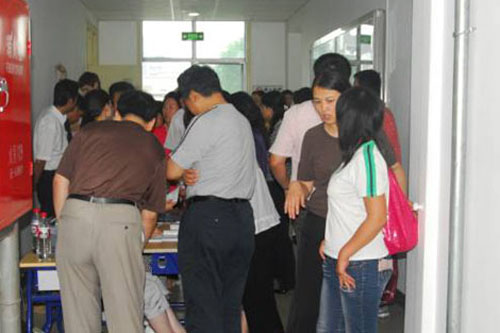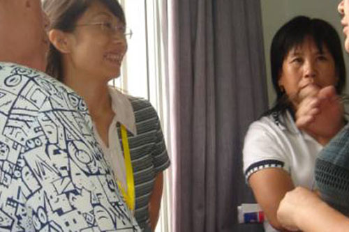 说明会场外,教学部的马老师等工作人员忙里偷闲摆个POSE