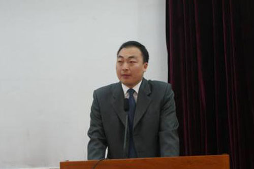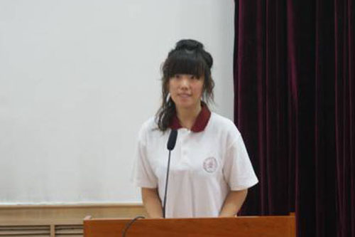 教师代表张书涛老师也做了十分精彩的双语发言,他说,北京的九月因为同学们的到来,变得更加的美丽,他勉励同学们要树立成为中国龙的远大理想,严格要求自 己,遵守学校的各项规章制度,珍惜在北师大学习的时光,以北师大为荣,向北师大的名师们看齐,发奋有为,努力成才!