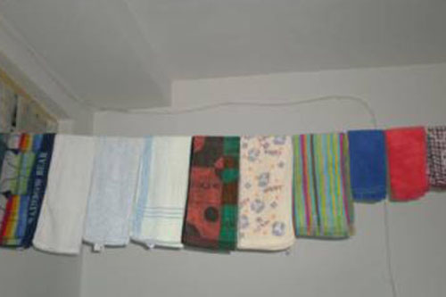 良好的生活习惯,才能确保健康的体魄。毛巾一串排开,长短分类,通风除菌,不但没有影响室内的形象,反倒体现出了屋子主人的细心,干净的生活习惯!