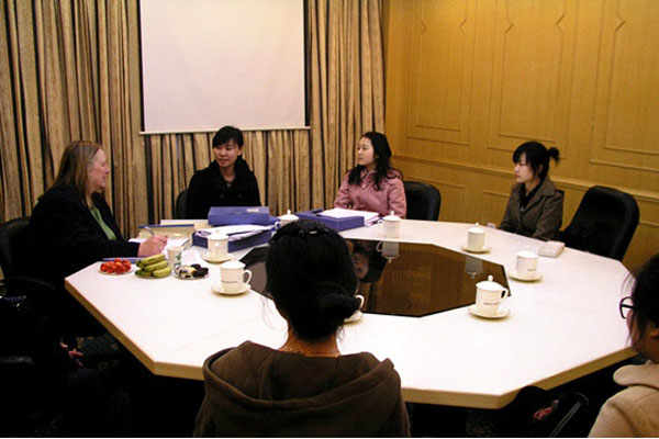 我校HND项目顺利通过外审-院领导及教师学生代表与外审官员合影留念外审员与任课教师讨论外审员与同学们亲切交谈