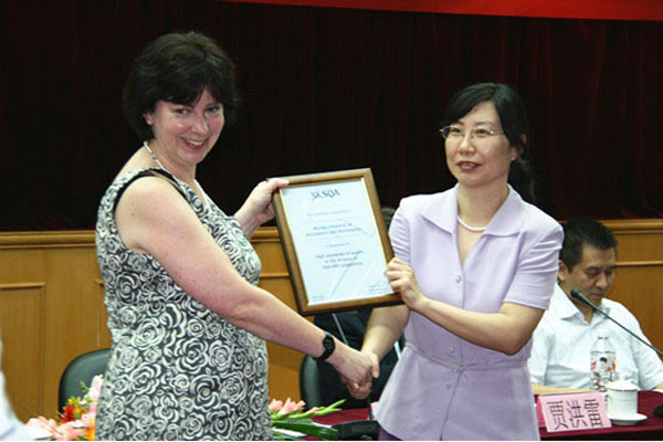 苏格兰学历管理委员会(SQA)国际部中国区经理Hilary女士代表SQA总裁Janet Brown向北航颁发“杰出教学中心”奖。Hilary女士说,在SQA和留学服务中心6年多的合作中,北航体现了高质量的教学水平和管理体系,有一支十分敬业的教师队伍,在教学管理、考核、内审、外审等各方面都有非常出色的表现,教学和管理的高质量确保学生在严格的监控下能够得到良好的发展。SQA现已得到国际的广泛认可,优良的质量体系是HND项目的*大价值,也是与社会行业标准接轨的关键所在。Hilary女士祝贺北航多国留学项目取得“杰出教学中心”的称号,也预祝所有的老师和同学在新的一年快乐进步。