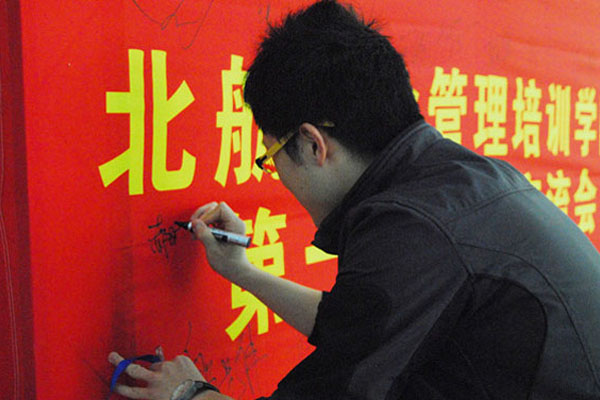 *后为现场交流环节,大家争相发问,校友们热情地给予解答,同学们受益匪浅。交流会在温馨和谐的气氛中落下帷幕。通过这次交流会,给同学们提供了很多有价值的学习生活的经验,增进了校友之间的感情和联络,*令学校老师欣慰的是,看到很多校友在优良的大学攻读硕士或硕士毕业,如:牛津、约克、杜伦、伦敦政经、帝国理工、布里斯托等,并通过努力顺利在国外或国内找到自己满意的工作单位,如:巴黎银行、甲骨文、IBM、杜邦、德勤、中粮、中石油、商务部、民生银行等,体现了在目前就业形势严峻的情况下,无论与国内本科生还是与其它出国项目留学生相比,北航HND毕业生在教育背景、英语运用、专业知识、工作技能等各方面更有综合优势和强劲的竞争实力。