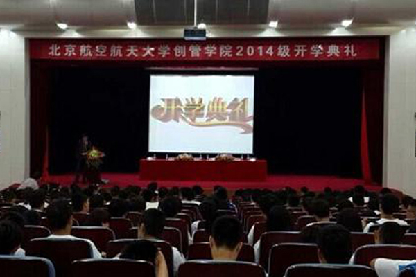 2014年9月22日9:30,北京航空航天大学创管学院2014级开学典礼在北航学术交流厅隆重举行。北航创管学院董青春院长、教育*留学服务中心官员 贾颖老师、北航创管学院国际教育项目主任赵伟老师、英国伍斯特大学首席代表谢源晖先生、北航国际项目教师代表徐涛老师出席了开学典礼。