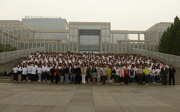 首先,董院长向2014级新生的到来表示欢迎,并与大家分享了优良学长学姐的故事和成长经历,希望同学们在英语水平、专业技能和个人能力等方面全面发展;贾老师向大家重点介绍了北航国际项目在中国众多留学项目中的优势和成果,以及留学服务中心为中国留学生所提供的服务工作;谢老师从现代社会职场的用人之道出发,讲解了茗校、高分与 成功的非必然关系,让同学们对未来的发展有一个更清晰的目标。徐老师则结合自己经验,为大家展示了英语的学习方法。新生代表苏子文同学则代表大一新生向领导、老师和家长表达了他们的信心与决心,以及对即将正式开始的大学生活的期待。