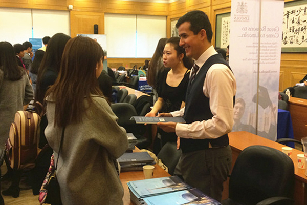 随后是自由咨询环节,同学们开始积极得向国外高校老师进行沟通交流。