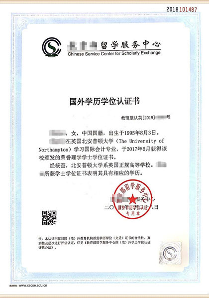 ▲学士学位认证书