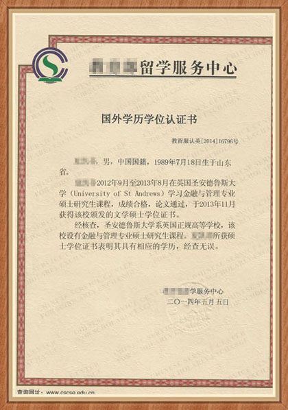 ▲硕士学位认证书