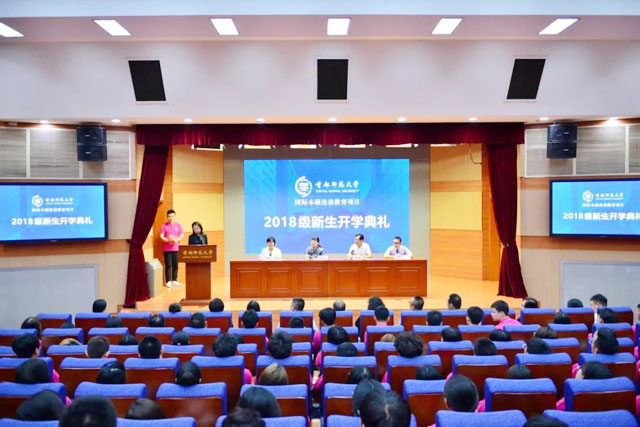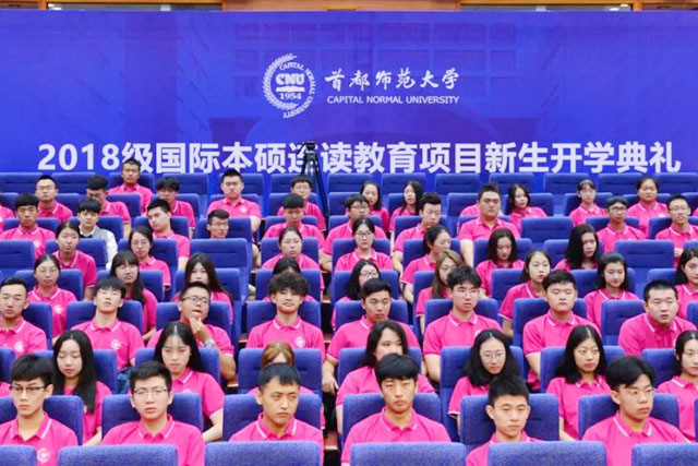 9月17日,首都师范大学国际本硕连读教育项目2018级新生开学典礼在首师大国际文化大厦二楼报告厅隆重举行。首都师范大学国际文化学院刘晓天院长、教育*留学服务中心国际项目负责人郭建航先生、首都师范大学孔子学院管理办公室王丽华主任、英国苏格兰学历管理委员会中国区负责人张进敏先生、首师大国际本硕连读项目中心教师、2018级全体新生参加了开学典礼。开学典礼由2018级公维正同学主持。上午9点,典礼在全体师生齐唱国歌中拉开帷幕。