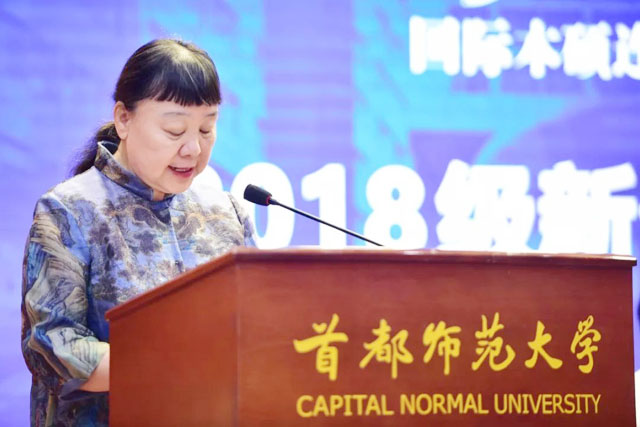 刘院长代表首都师范大学对2018级国际本硕连读新生的到来表示热烈的欢迎,她向同学们介绍了首师大本硕连读项目十年来的办学历史及取得的成就。她说大学四年的美好时光即将开始,为此刘院长给学生们提出了三点希望: