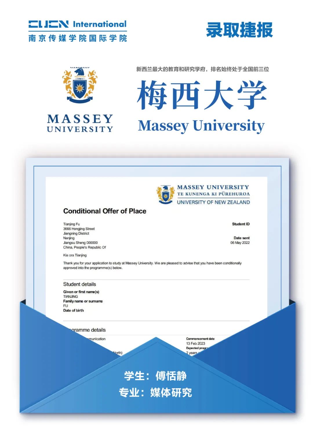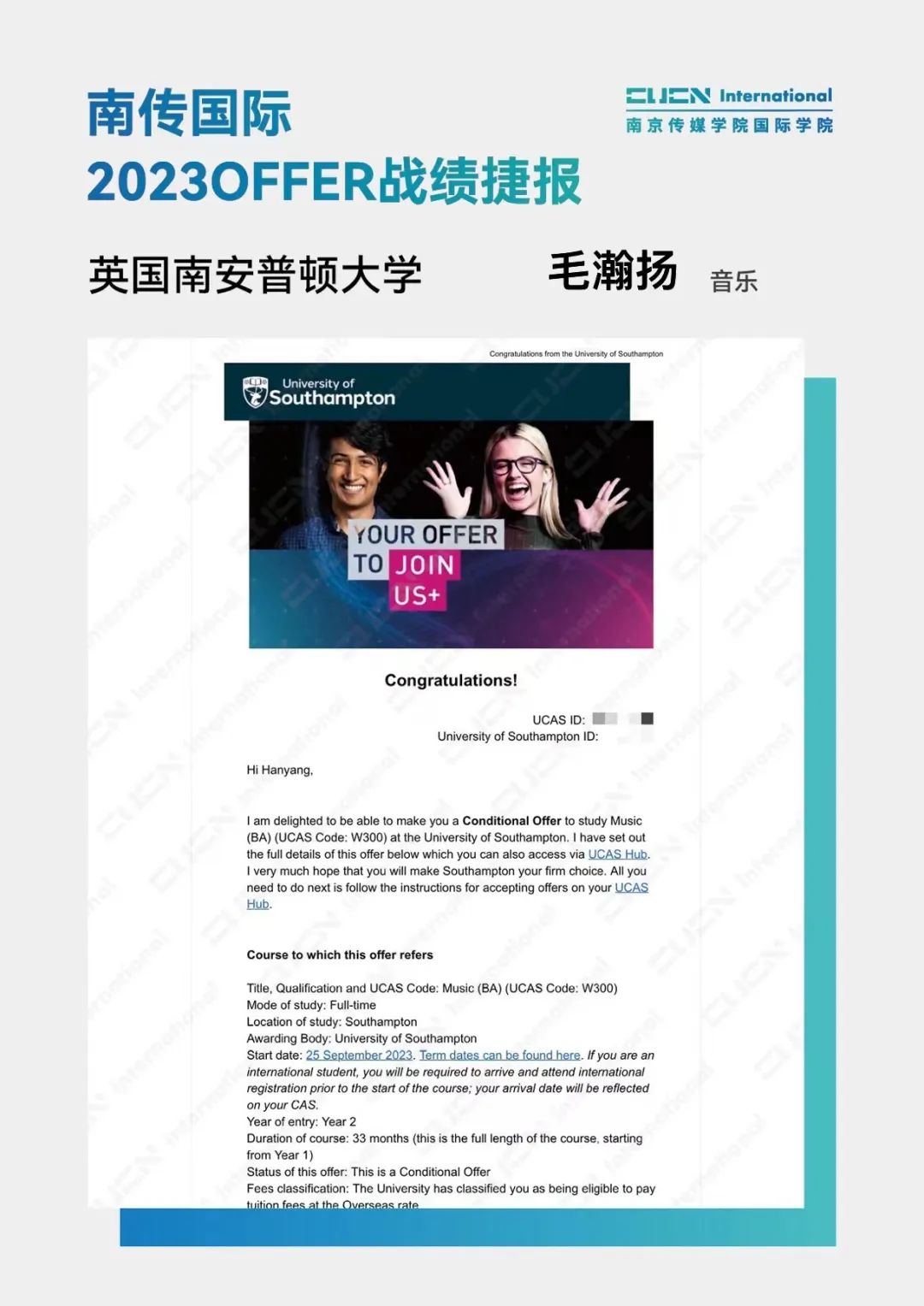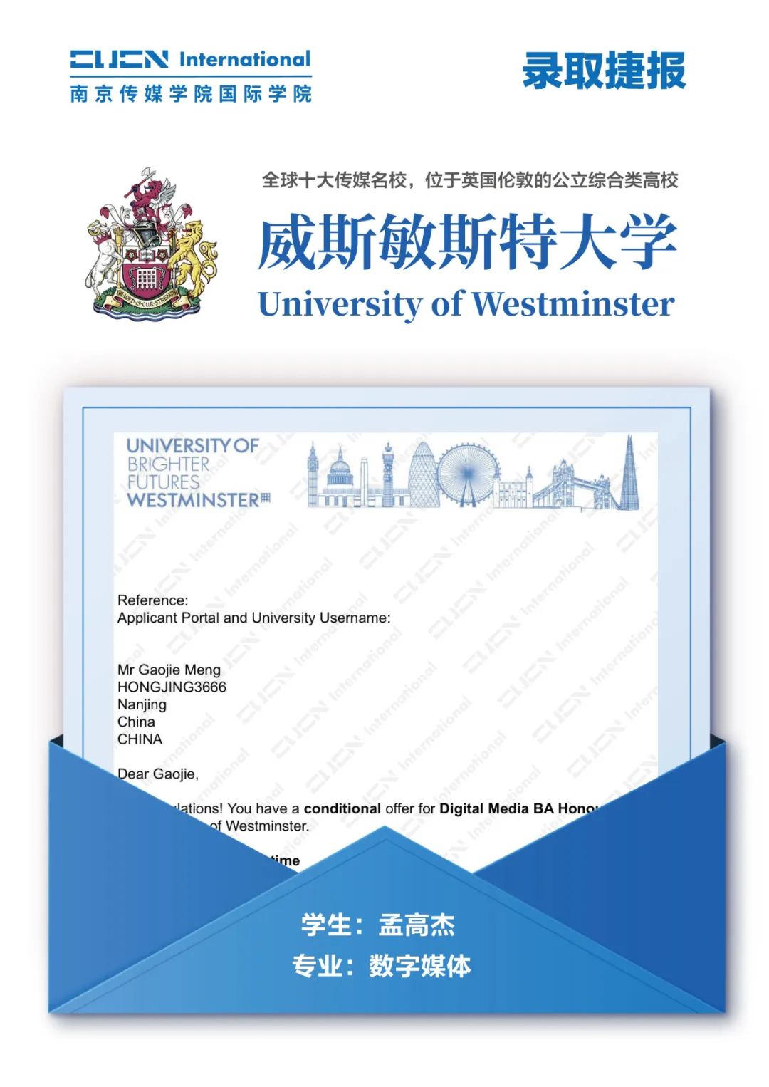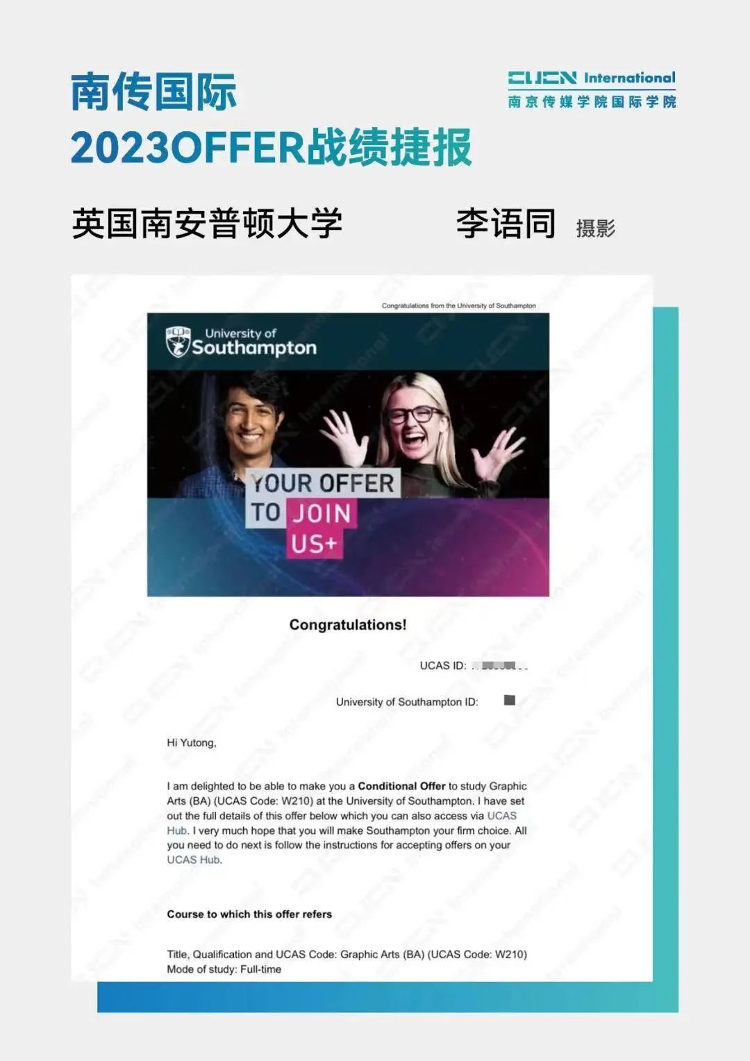 南京传媒学院国际本科2+2优秀学子