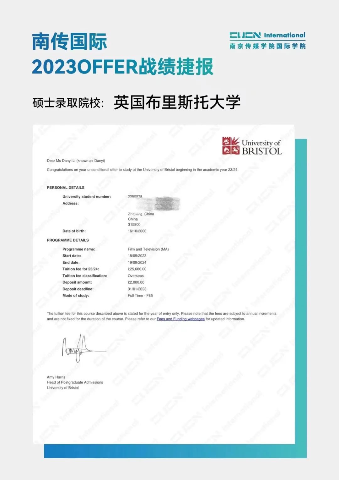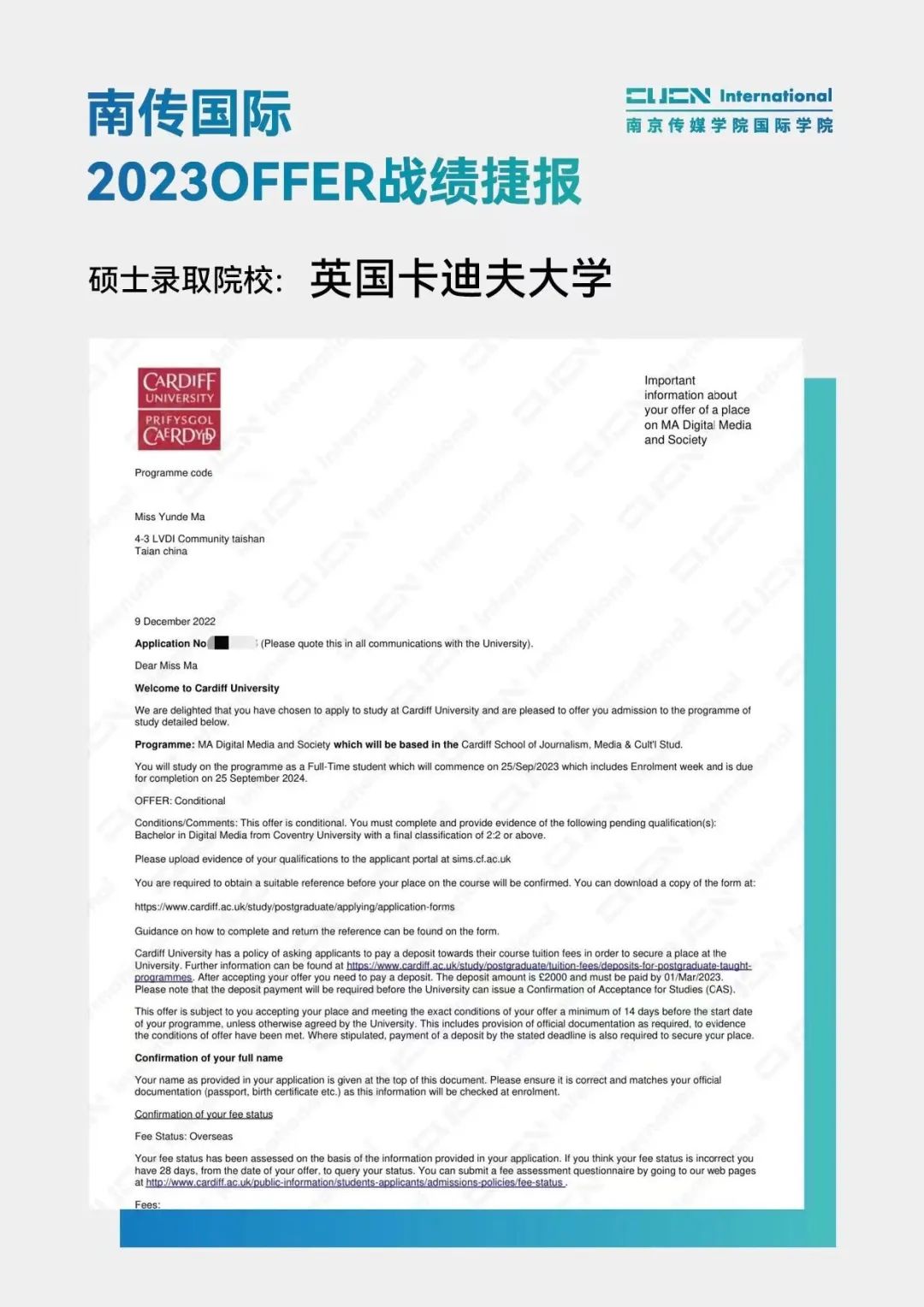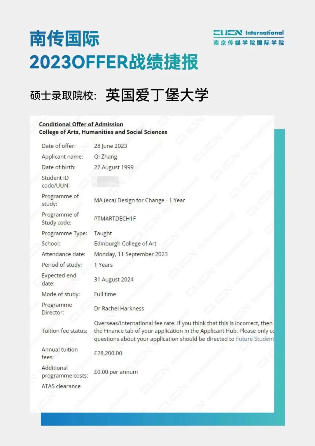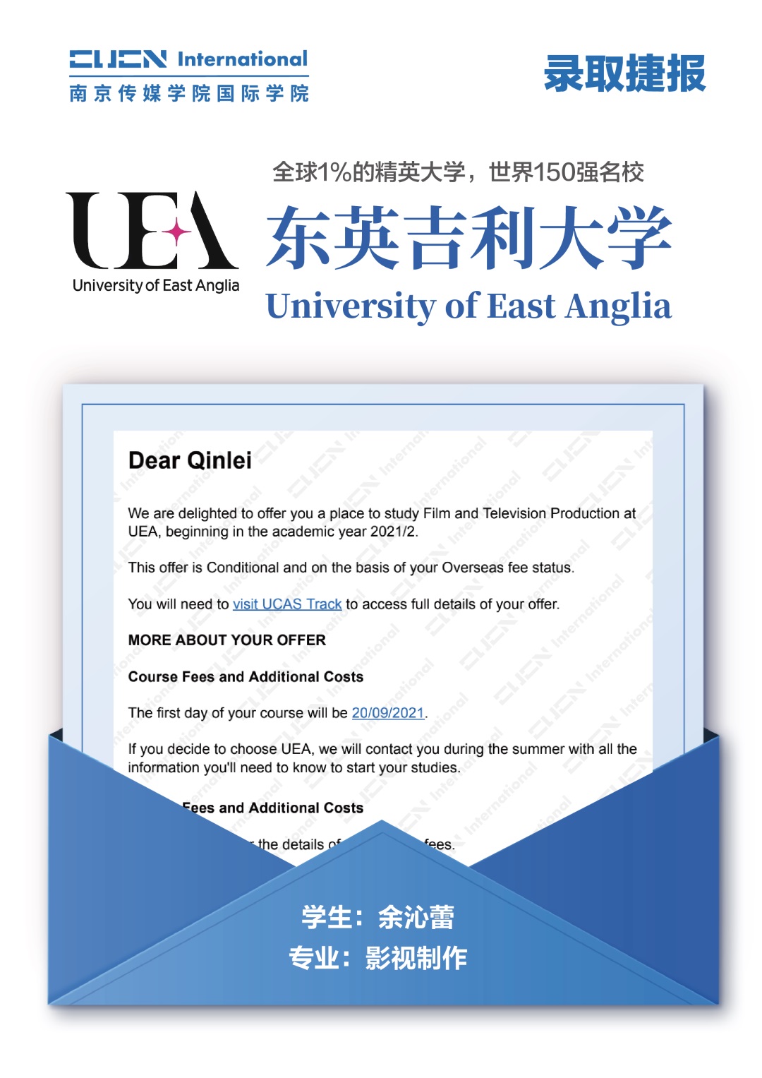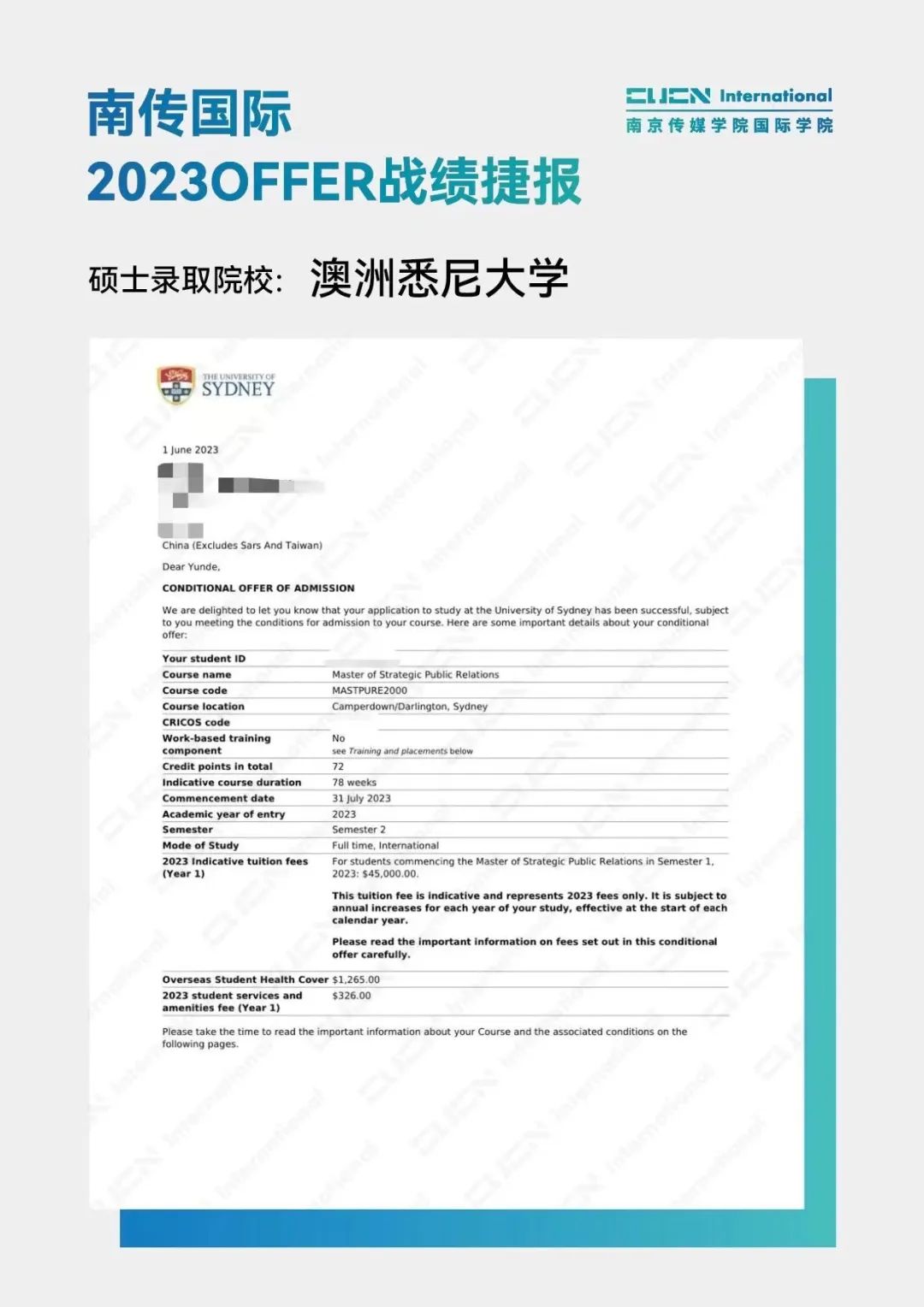南京传媒学院国际本科2+2优秀学子