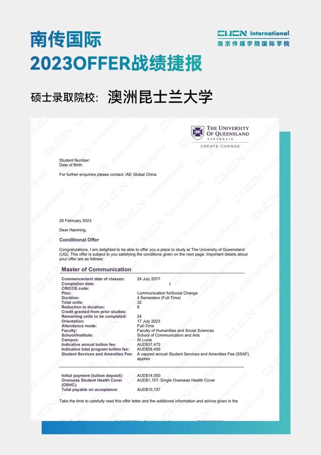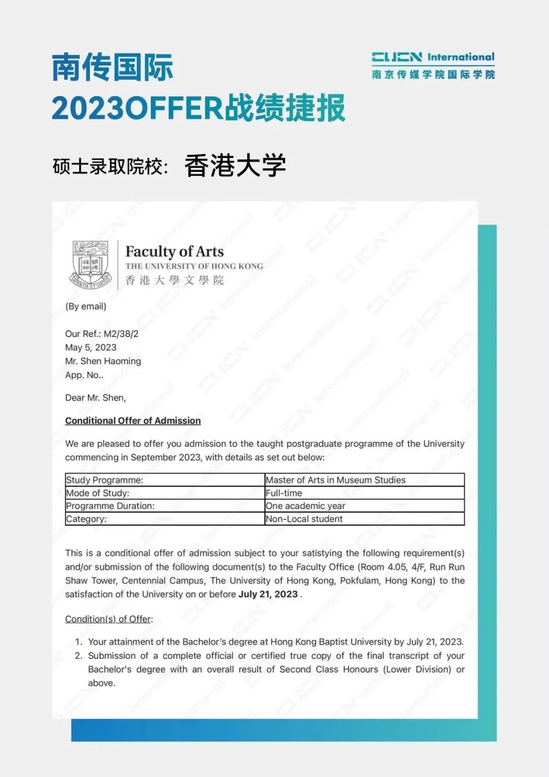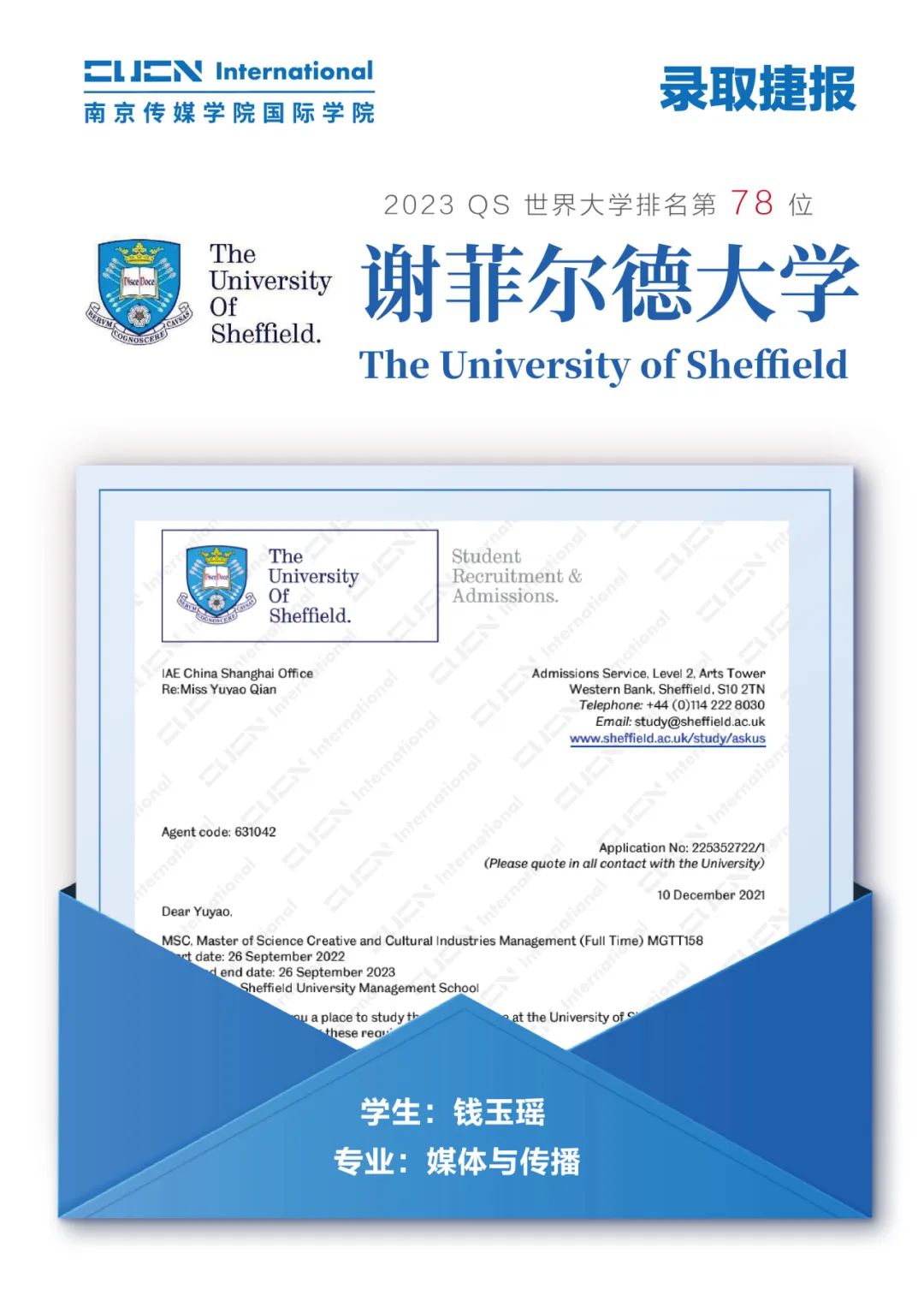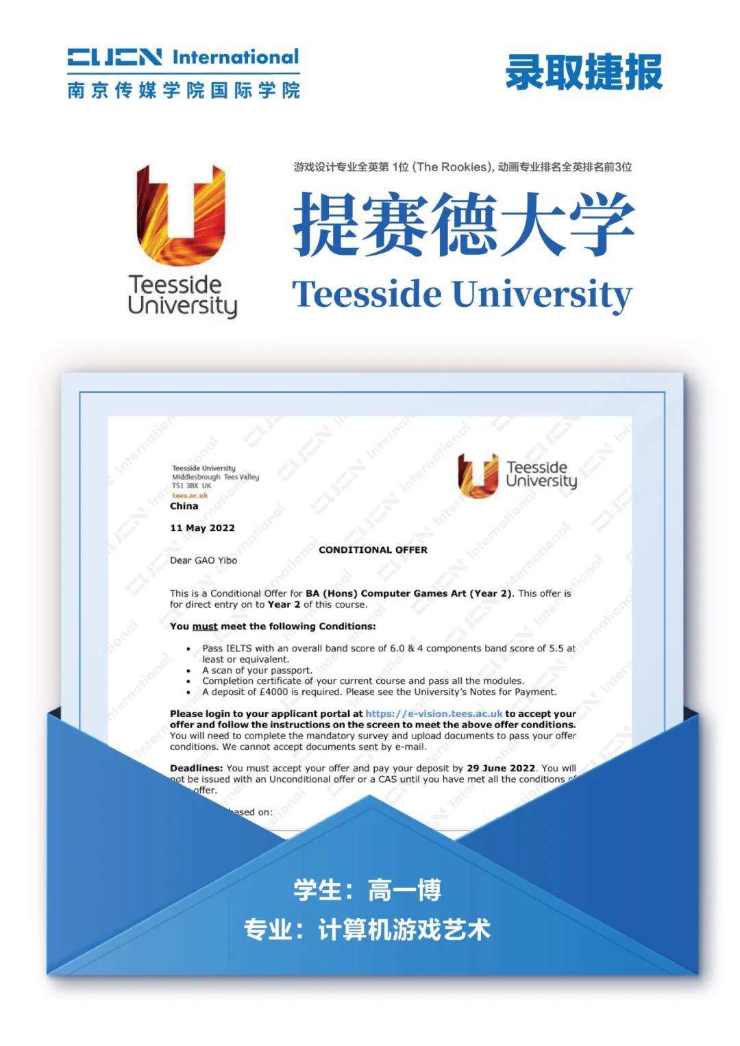 南京传媒学院国际本科2+2优秀学子