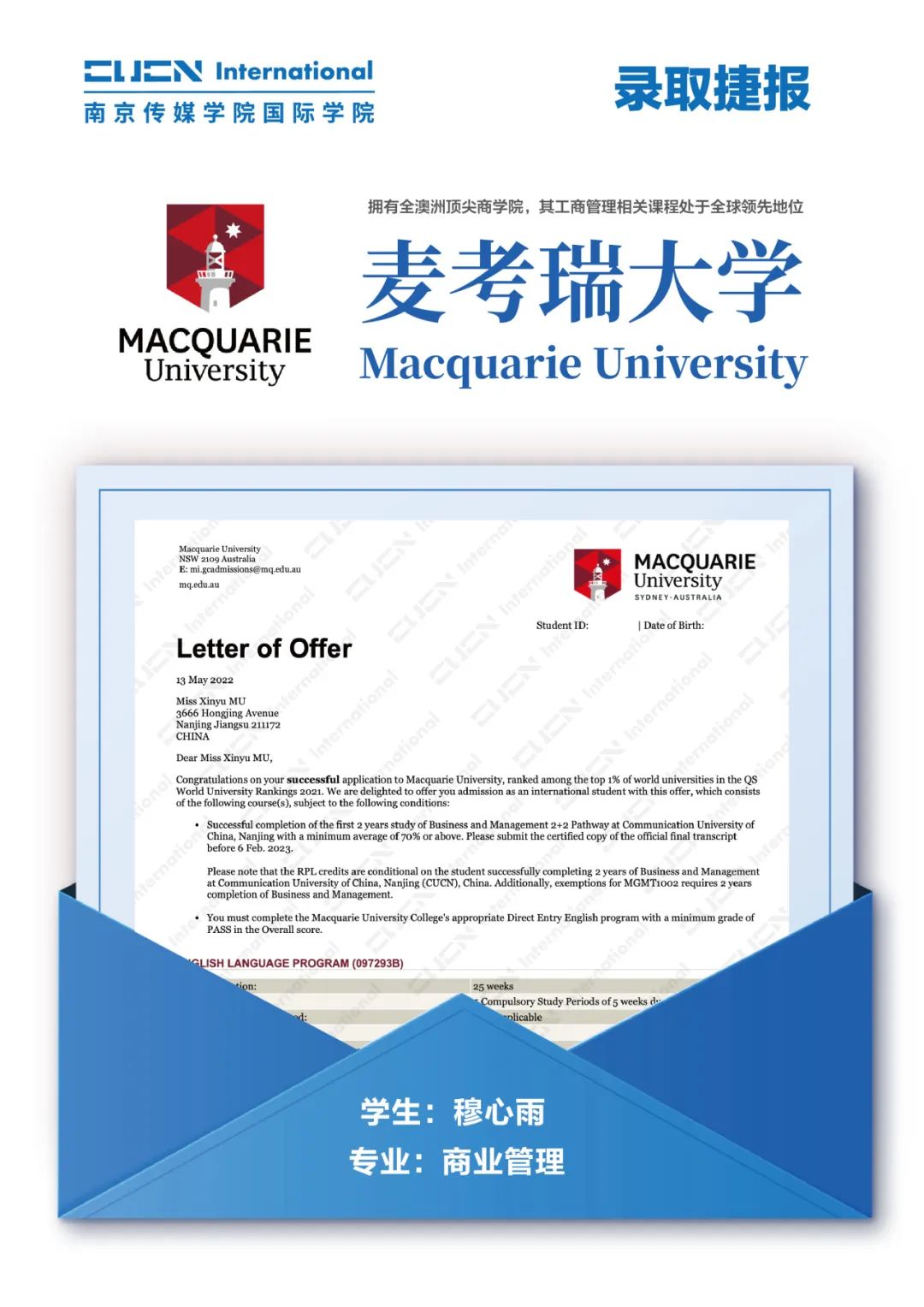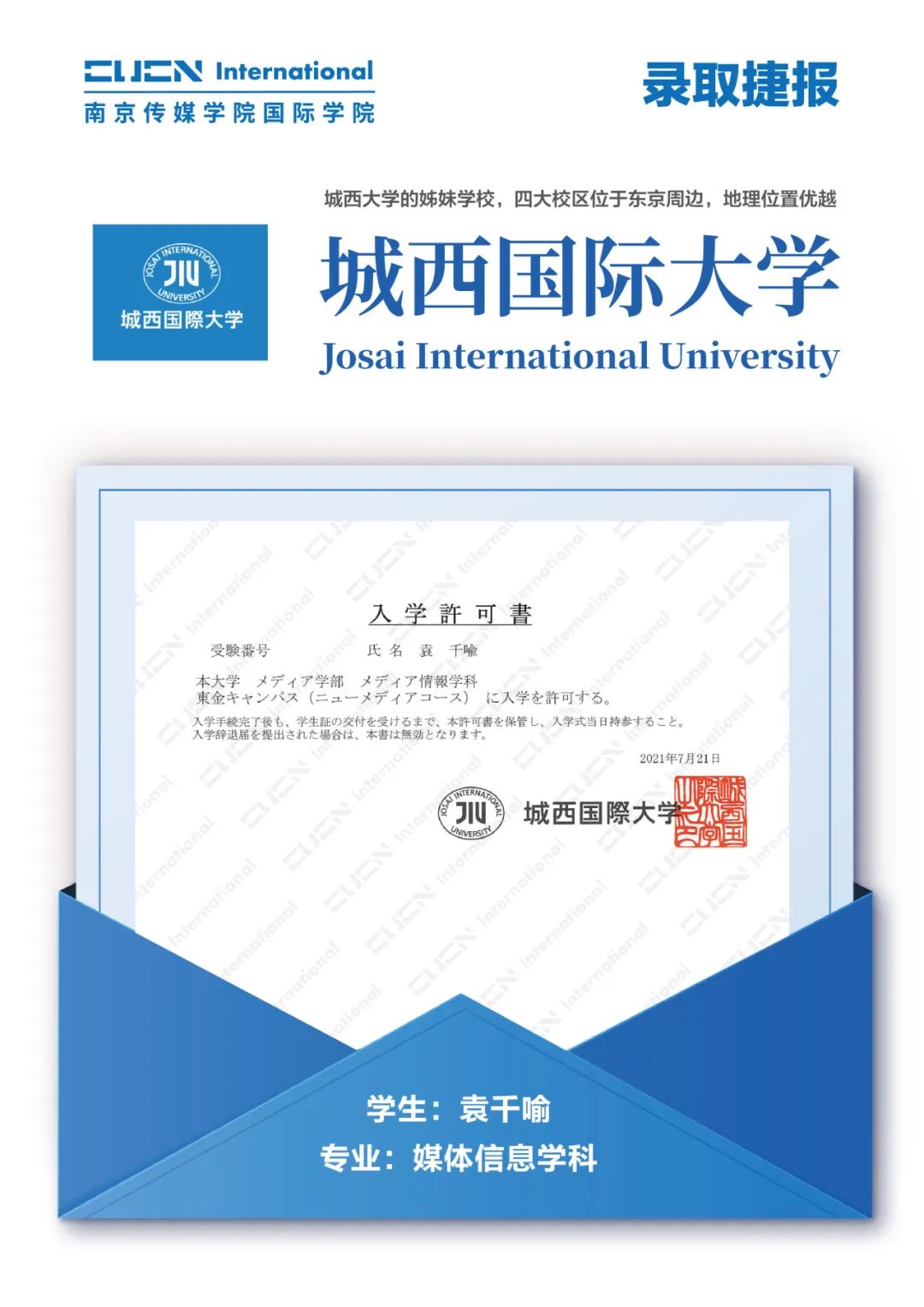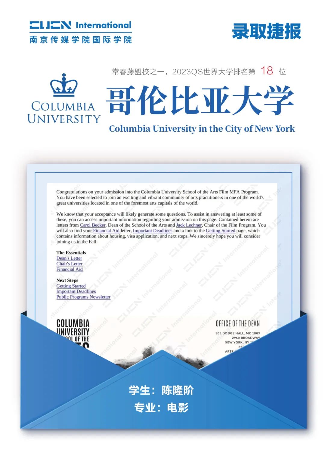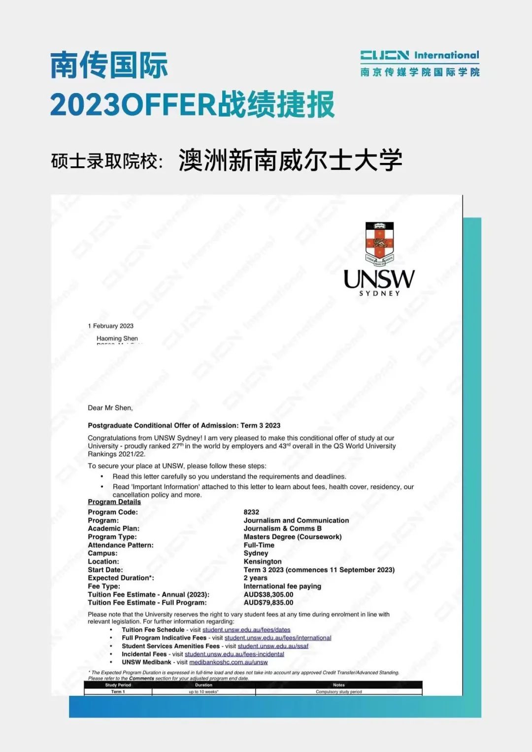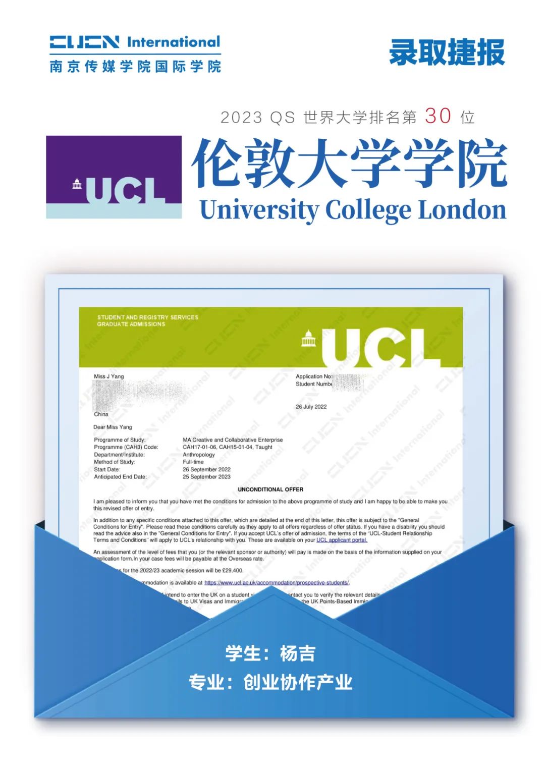 南京传媒学院国际本科2+2优秀学子