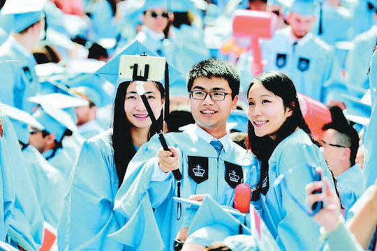 近年从美国毕业的中国留学生越来越多。上图为在哥伦比亚大学毕业典礼上的“中国面孔”。