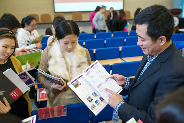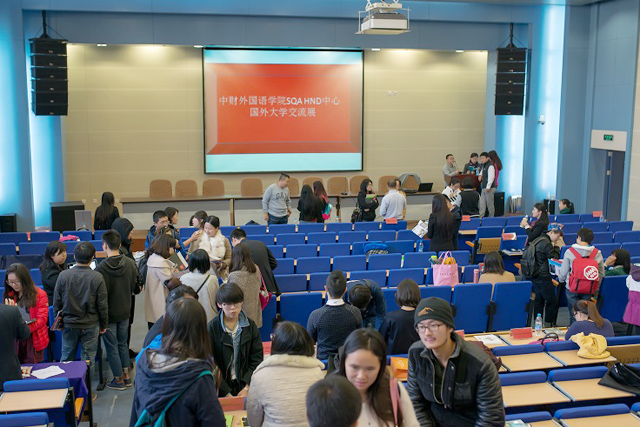 11月4号上午9点,中央财经大学SQA项目中心在学术会堂404顺利举行2015年国外高校交流会。参加展会的有德蒙福特大学、伯明翰城市大学、林肯大学、南威尔士大学等30多所国外高校校方代表,以及学院SQA项目学生共计500余人参加了交流会。