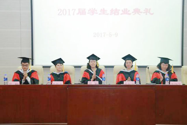 中央财经大学外国语学院SQA AD项目2017届学生结业典礼5月9日在学术会堂202举行,会议对全体学生颁发结业证书并对优良学生和先进个人进行颁奖。中央财经大学外国语学院院长黄振华、副院长李新英出席会议并发表重要讲话,会议由外语学院国际项目负责人陈颖主持。