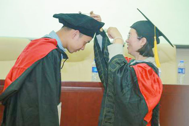 中央财经大学外国语学院院长黄振华为毕业生拨穗