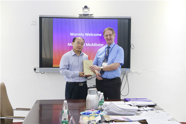4月2日,英国苏格兰学历管理委员会(SQA)外审员Mr.David McAllister到访我校,对我校HND项目课程进行审查。雍和明校长亲切接见了Mr.David,并赠送书籍留念。