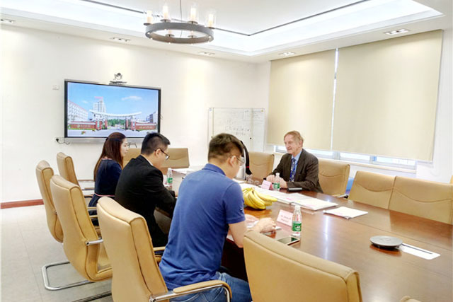 我校HND项目联络员、国际教育学院李副院长主持了本次审查工作。李副院长首先向Mr. David通报了我校HND项目的开展,其后David按照工作流程对我校开设的课程进行了细致的审查。