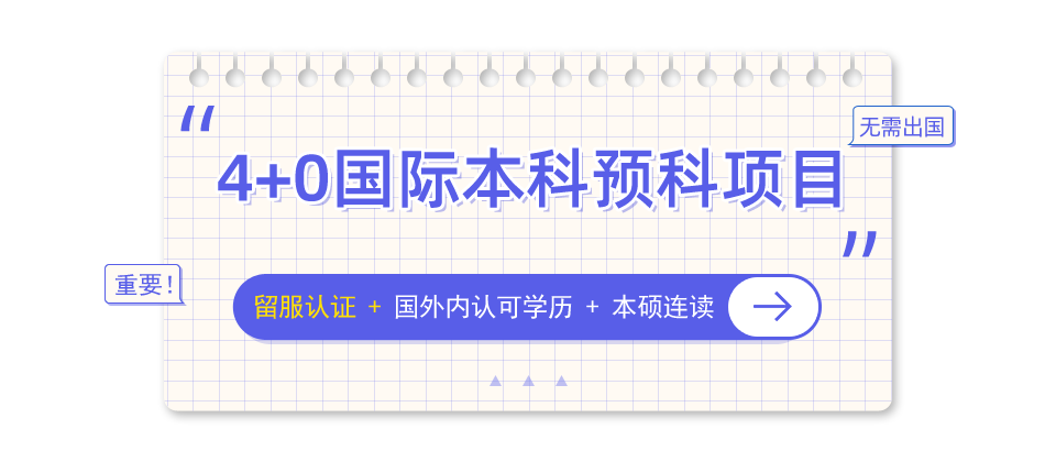 4+0国际本科是在某国际本科专业就读,只需在中国高校学习四年,不用出国学习,顺利毕业后可以取得中外双学位和毕业证。如果参加高考没有达到统招分数线而被少数几个大学4+0项目通过自主招生考试录取的学生,学生毕业后只能拥有国外本科学位。